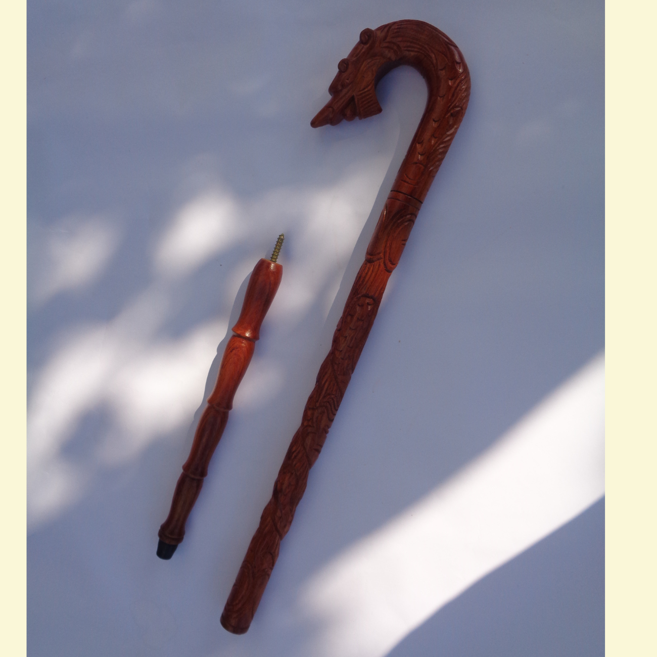 Gậy gỗ batoong chống cho người già -Đầu rồng thân trạm rồng- gỗ hương tự nhiên