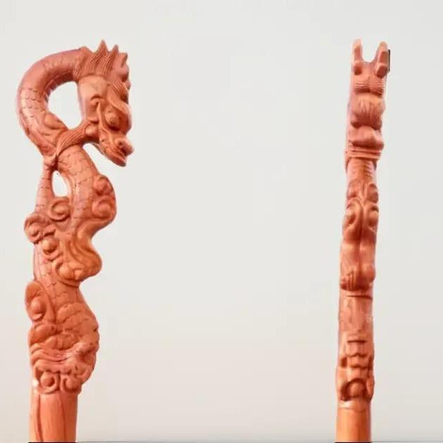 Gậy gỗ đầu rồng nguyên khối gỗ hương -kt 90 x 13