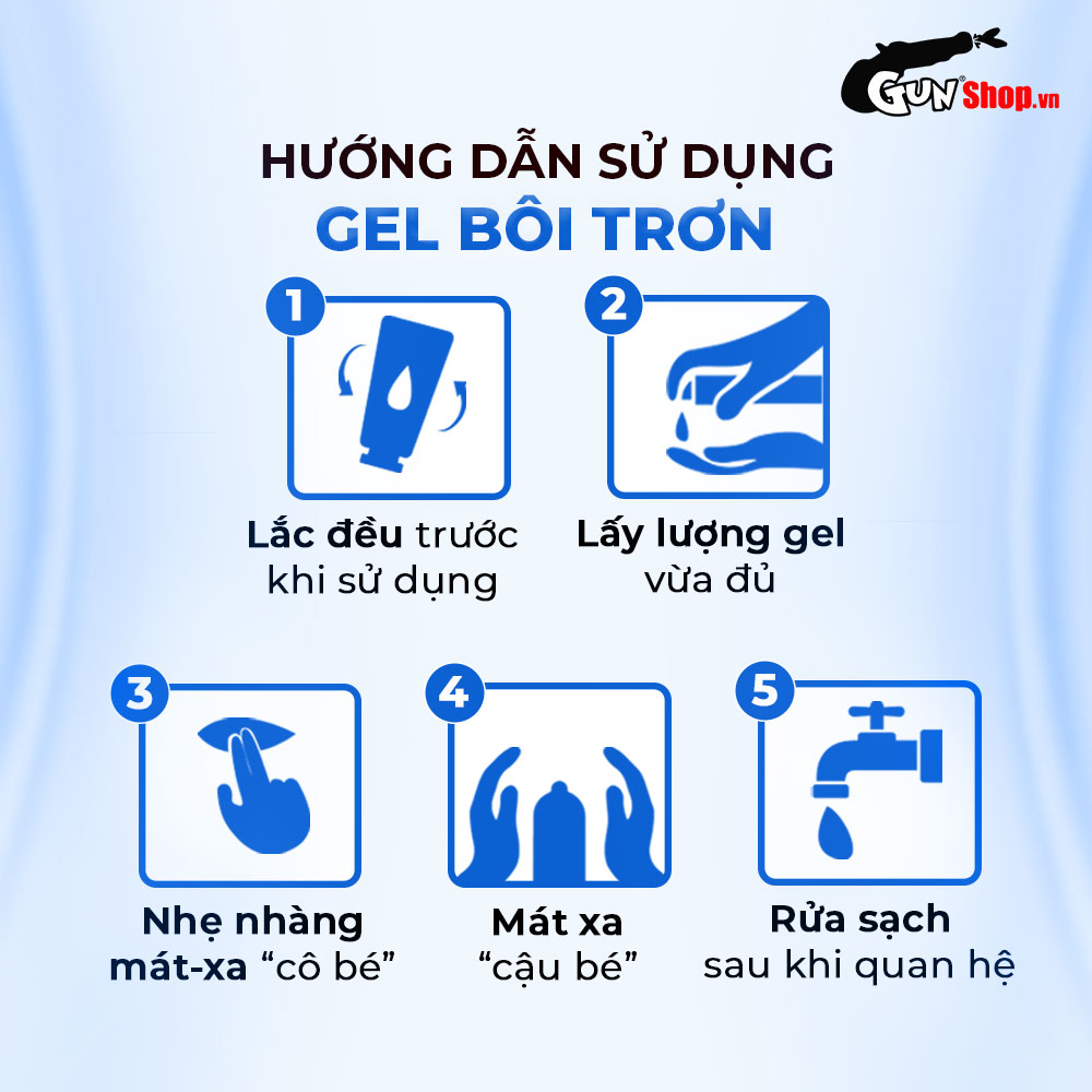 ✪ Cách dùng: Lắc đều chai trước khi sử dụng. Tuỳ theo độ khô của "cô bé" hoặc sở thích, lấy một lượng gel vừa đủ ra tay. Với “cô bé”: Thoa lên ngón tay rồi nhẹ nhàng mát xa bên trong và bên ngoài của "cô bé". Với “cậu bé”: Thoa đều lên lòng bàn tay rồi mát xa khắp chiều dài của "cậu bé". Sau khi giao hợp, rửa sạch những phần gel còn sót lại trên cơ thể với nước.