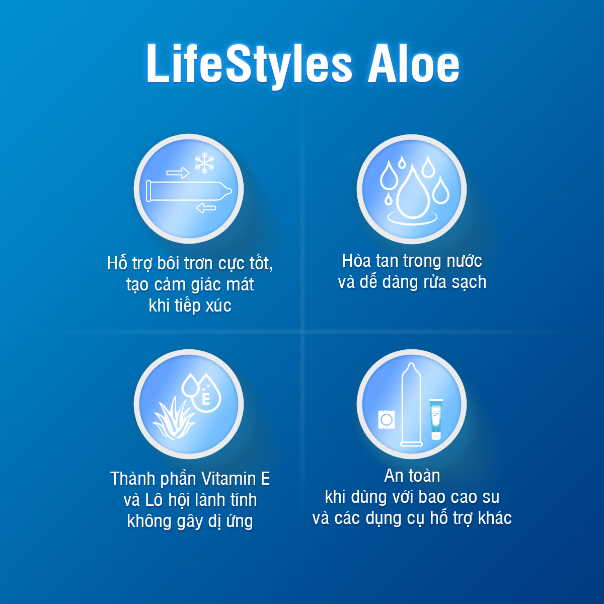 - Gel bôi trơn LifeStyles Aloe Personal Lubricant hỗ trợ trong quan hệ tình dục hoặc dùng cho cơ thể khô hoặc massage toàn thân. Tạo cảm giác mát trong tiếp xúc giúp bạn cảm thấy diệu nhẹ và tươi mát.
