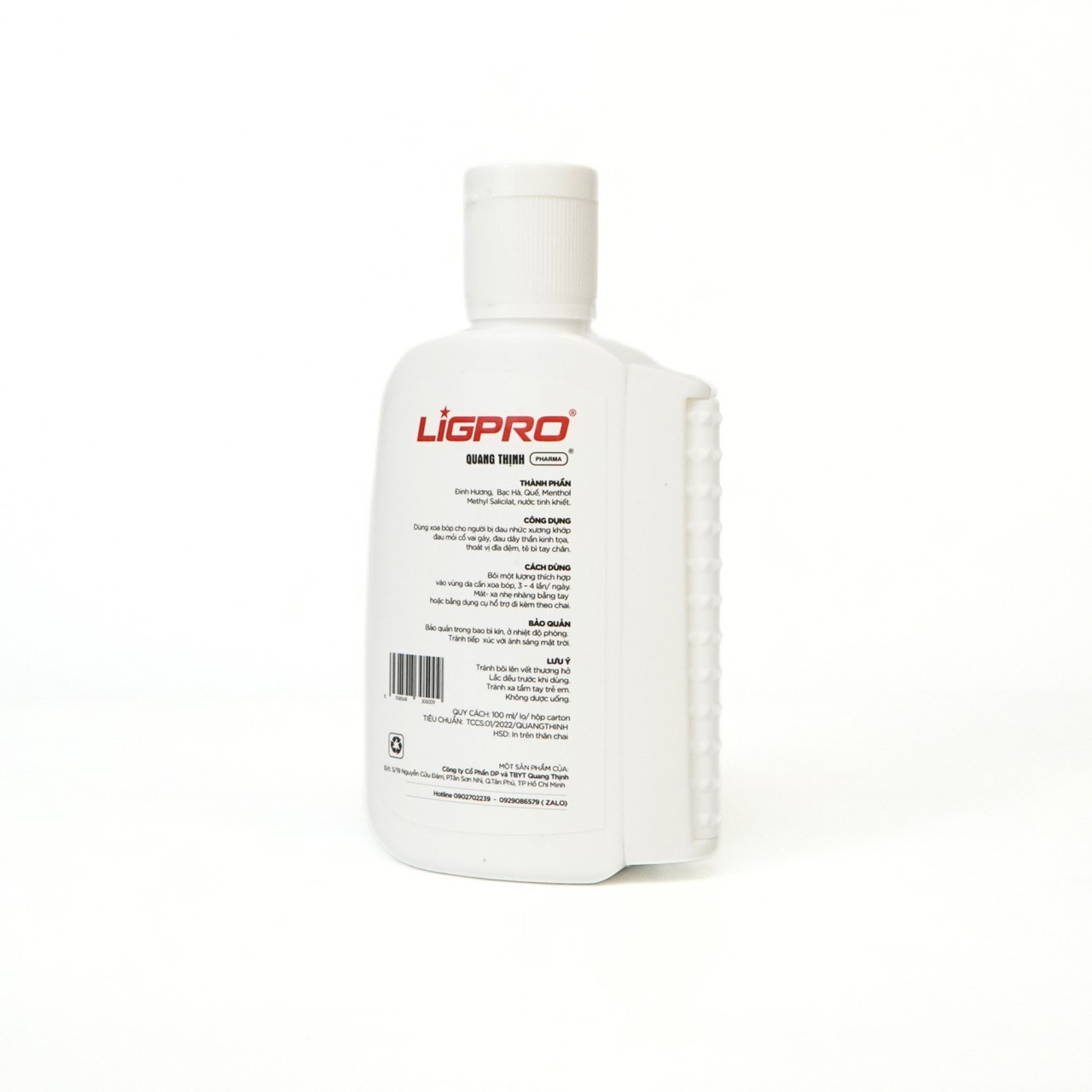 Gel nóng xoa bóp Ligpro, chai 100ml ( tặng kèm theo con lăn massa) Thành phần: Đinh hương, bạc hà, quế, menthol, Methyl salycilat, nước tinh khiết Công dụng: + Dùng xoa bóp cho người