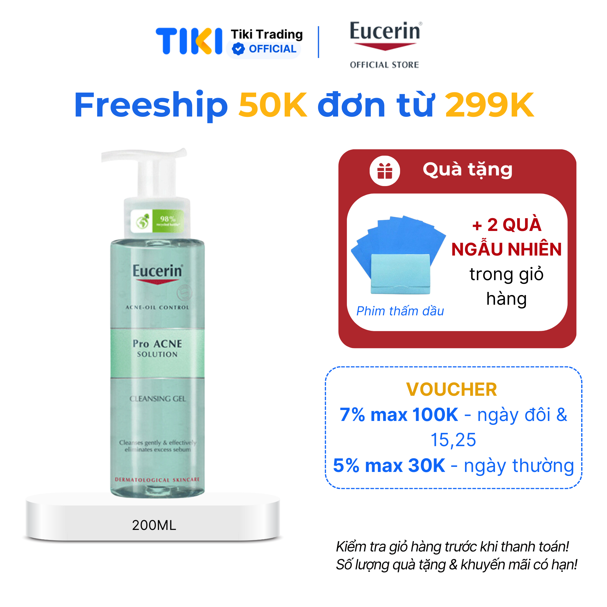 Eucerin ProAcne Cleansing Gel là gel rửa mặt hằng ngày, chứa 6% Ampho-Tensides giúp làm sạch da mụn nhẹ nhàng và hiệu quả, phù hợp với mọi loại da, đặc biệt là da nhờn mụn nhờn. Có đặc tính ngăn ngừa vi khuẩn mang lại một làn da sạch khỏe.