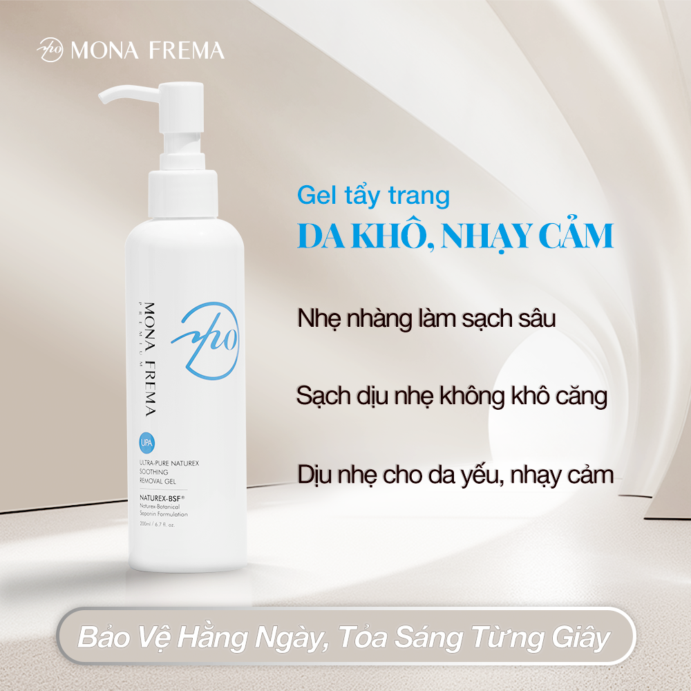 ✨Gel Rửa Mặt Làm Dịu Da Chiết Xuất Từ Thực Vật NATUREX SOOTHING REMOVAL GEL MONA FREMA 200ml Tẩy Trang Nhẹ Nhàng Hiệu Quả, Loại Bỏ Bụi Bẩn, Màng Bã Nhờn, Công Nghệ Làm Sạch Điện Âm, Giữ Ẩm, Tạo Cảm Giác Thoải Mái Mà Không Căng Da.