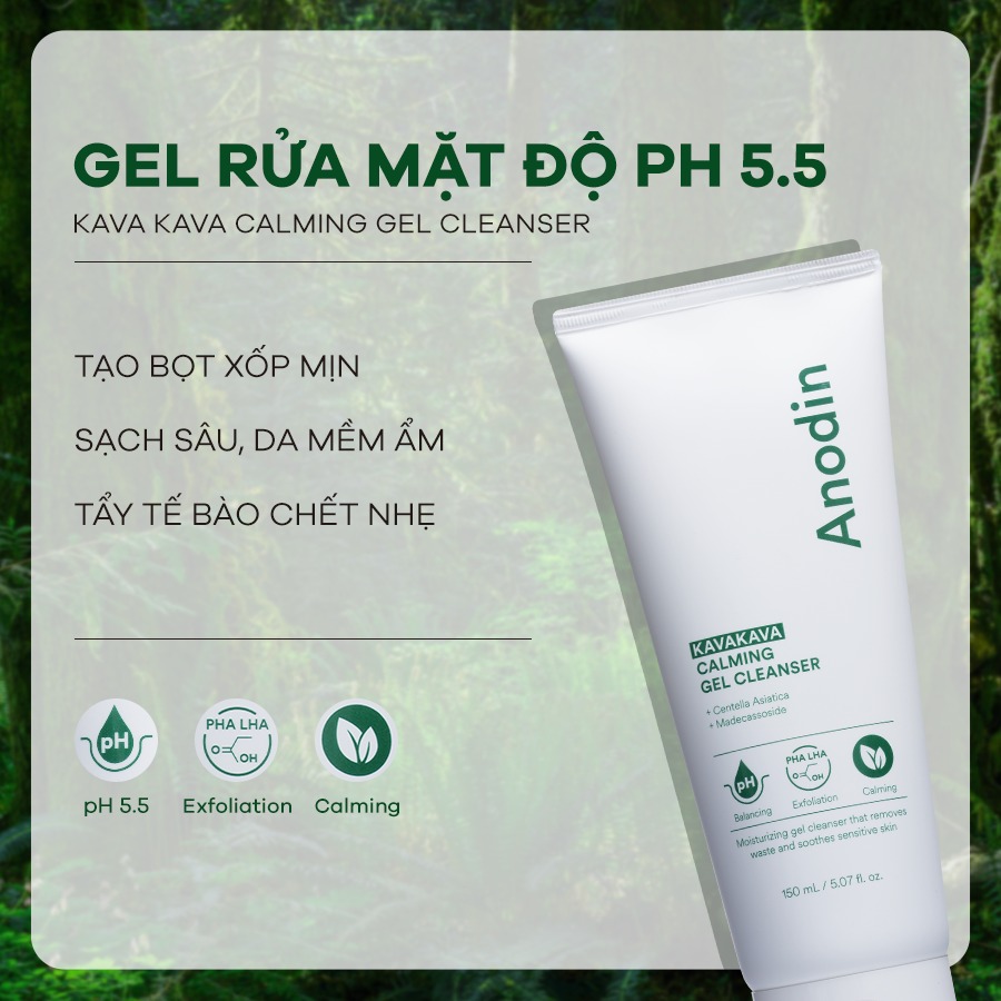 ✨Gel rửa mặt sạch sâu dành cho da dầu mụn, nhạy cảm Ph 5.5 Anodin KavaKava Calming 150ml