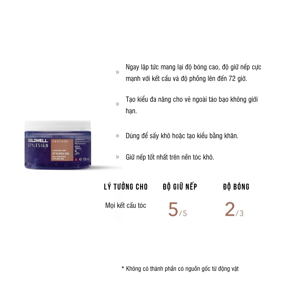 Gel Tạo Kiểu Tóc Goldwell Lagoom Jam Giữ Nếp Lâu Với Kết Cấu Và Độ Phồng Lên Đến 72 Giờ 150ml - Phù hợp với tình trạng: Mọi loại tóc CÔNG DỤNG - Ngay lập