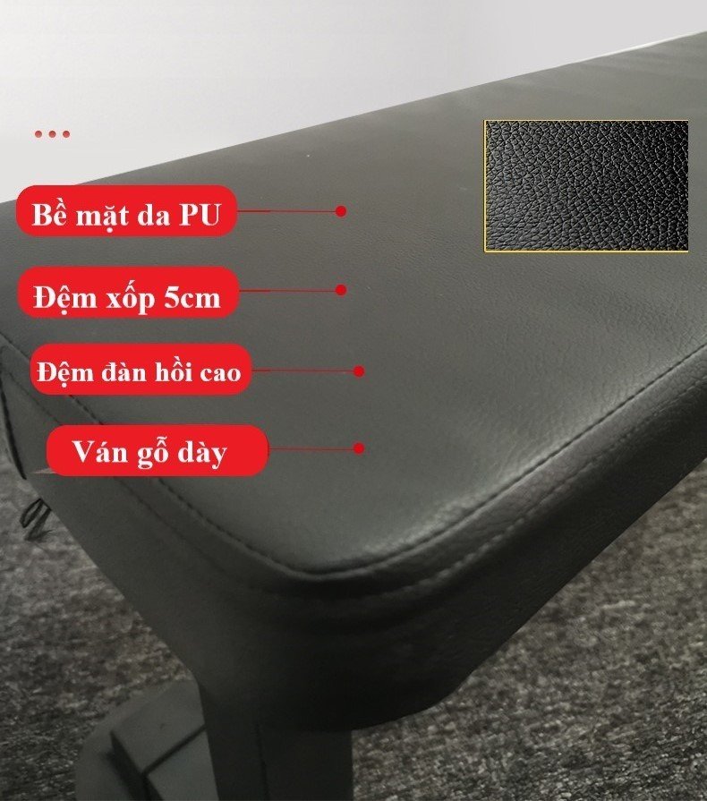 - Ghế băng tập tạ AC-5002 được thiết kế cùng chất liệu bề mặt da PU cao cấp, đệm xốp dày 5cm cùng ván gỗ dày tạo độ chắc chắn, kiên cố và chịu trải cực cao. Với thiết kế đệm xốp dày như vậy sẽ giúp ghế có được khả năng đàn hồi khi trải nghiệm thực tế các bài tập đa năng với ghế băng tập tạ AC-5002.