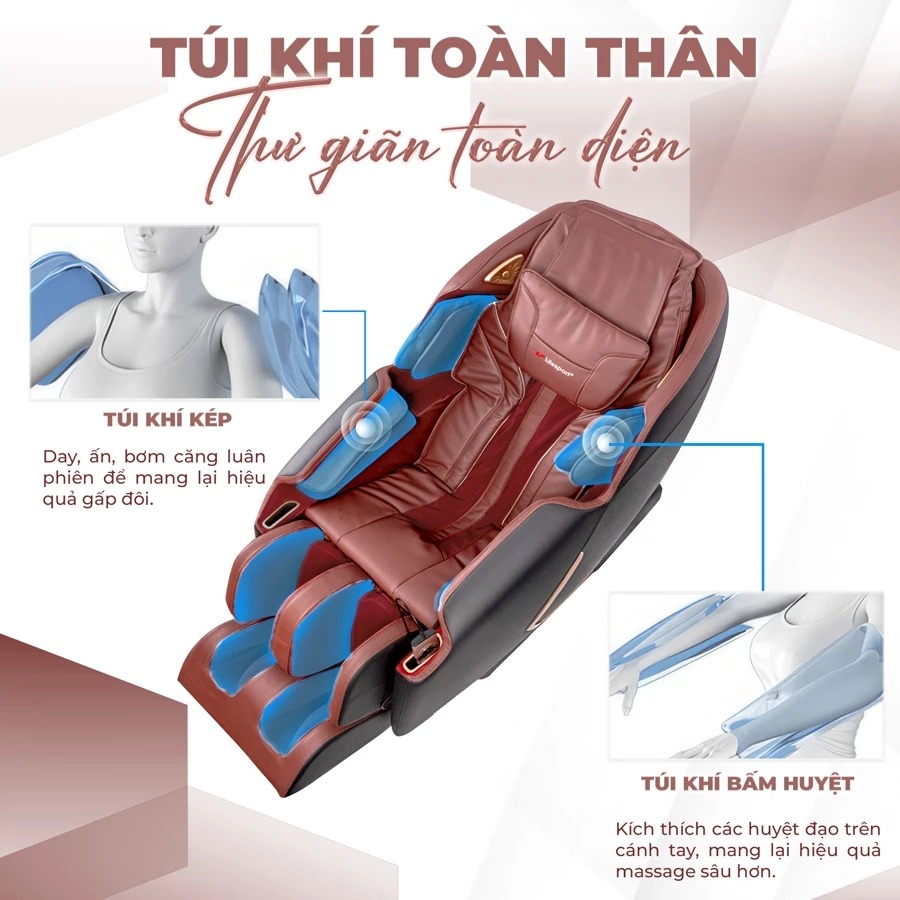 Công nghệ AIR FLEX: Bí quyết đằng sau sự thư giãn hoàn hảo: Công nghệ AIR FLEX sử dụng hệ thống túi khí thông minh, được lập trình để tạo ra lực kéo giãn nhẹ