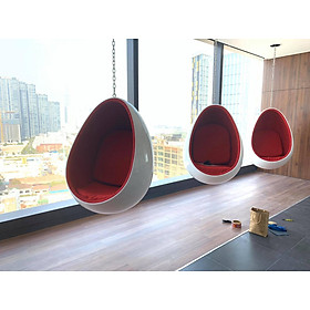 Quý khách hàng vui lòng chọn sản phẩm nhà bán JUNO SOFA để nhận được sản phẩm đúng với chất lượng Ghế thư giản Oval Chair dạng treo -Đây là một thiết kế hoàn toàn độc đáo, một chiếc ghế chất liệu sợi thủy tinh được treo trực tiếp lên trần được ví như ” phòng trong phòng” với không gian yên tĩnh, nhẹ nhàng. Chất liệu: được làm từ sợi thủy tinh, sơn men màu trắng, đen chống trầy, chống vàng ố và được bọc bằng các loại vải nỉ nhung. Màu sắc: đen, trắng. Phần nệm được bọc nỉ đỏ, đen, cam, vàng, xám … hoặc theo yêu cầu. Kich thước thùng: 1070 x 1070 x 770 mm Trọng lượng 25 kg Ghế ngày nay không chỉ là những vật dụng chỉ dùng cho phòng ăn, phòng khách với mẫu mã đơn giản nữa, mà còn được trang trí ở nhiều không gian khác nhau. Mẫu mã ghế thư giãn cũng rất đa dạng, nhiều kiểu cách, chất liệu, nhưng vẫn hướng tới tiêu chí chung là giúp cho người dùng được thoải mái, thư giãn…. không gây ảnh hưởng đến cột sống, mắt, cổ ….