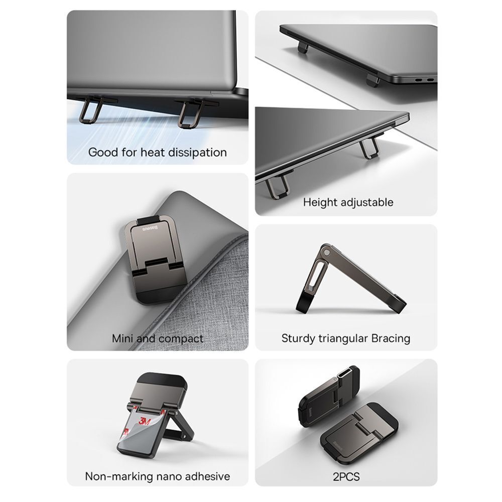 Đế Tản Nhiệt Đa Năng Siêu Nhỏ Gọn Cho Laptop/Mac-book Ba-se-us Slim Laptop Kickstand (2pcs) - Sở hữu kích thước siêu nhỏ, siêu mỏng chỉ 5mm tiết kiệm không gian, bỏ ba lô cực kỳ