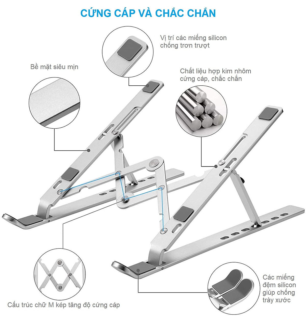 Giá Đỡ Laptop Hợp Kim Nhôm, Gấp Gọn, Giúp Tản Nhiệt Laptop, Macbook
