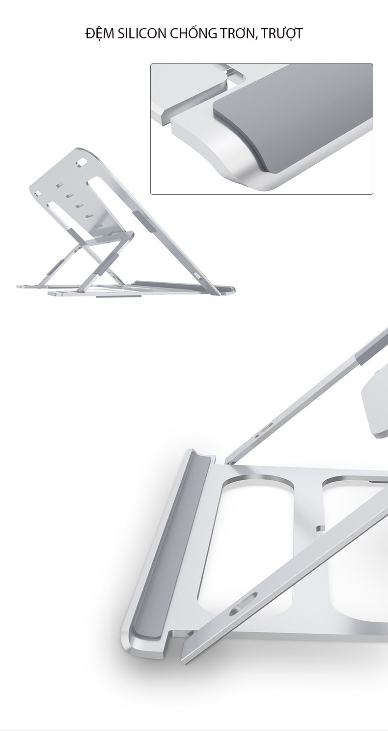 Giá đỡ Laptop Stand Thương hiệu: Mô tả sản phẩm - Thiết kế công thái học: Giá đỡ máy tính xách tay thiết kế kiểu Z có thể điều chỉnh độ cao và góc bằng