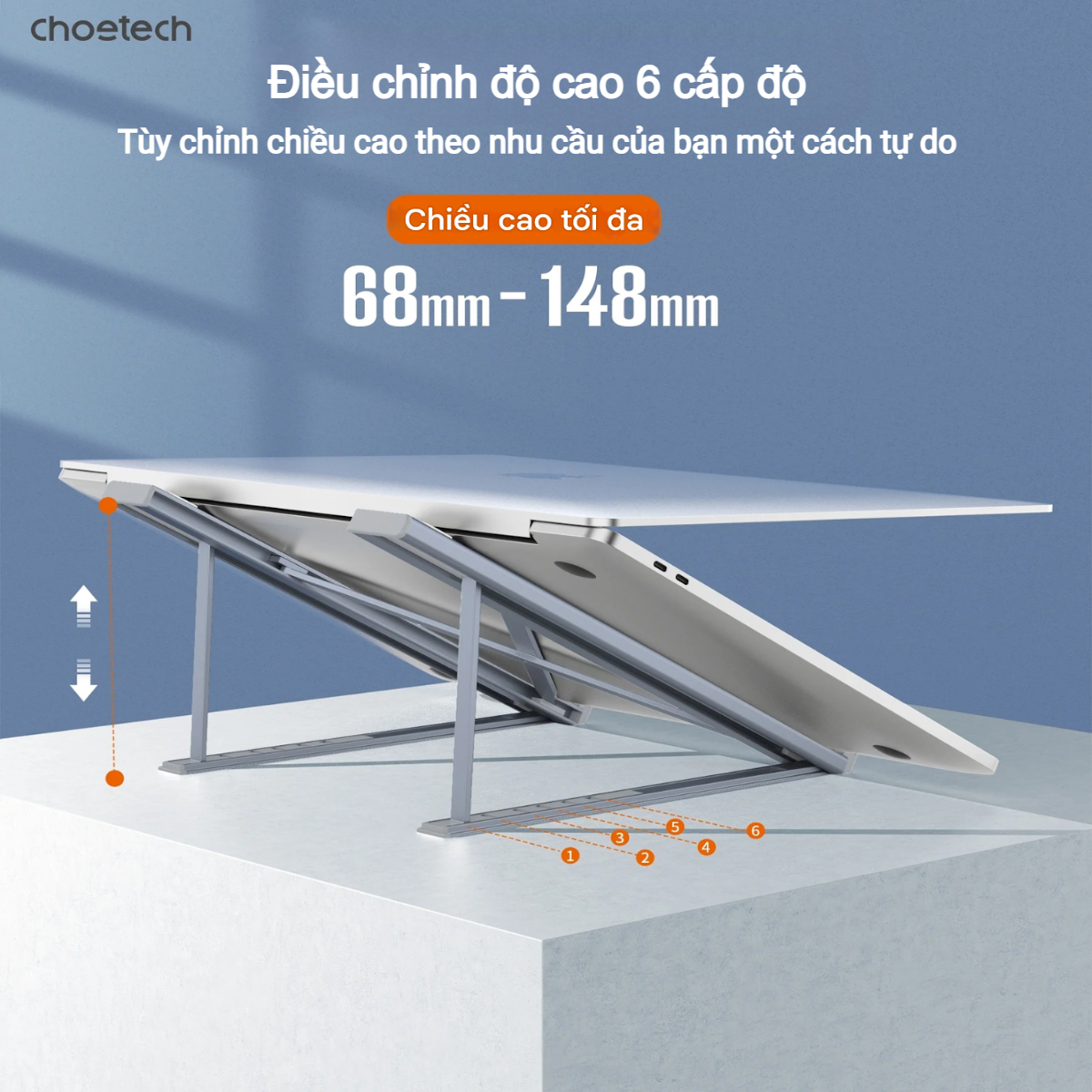 ✨Giá đỡ laptop tản nhiệt gấp gọn Choetech H055 cho máy từ 9' đến 17' inch - Hàng chính hãng