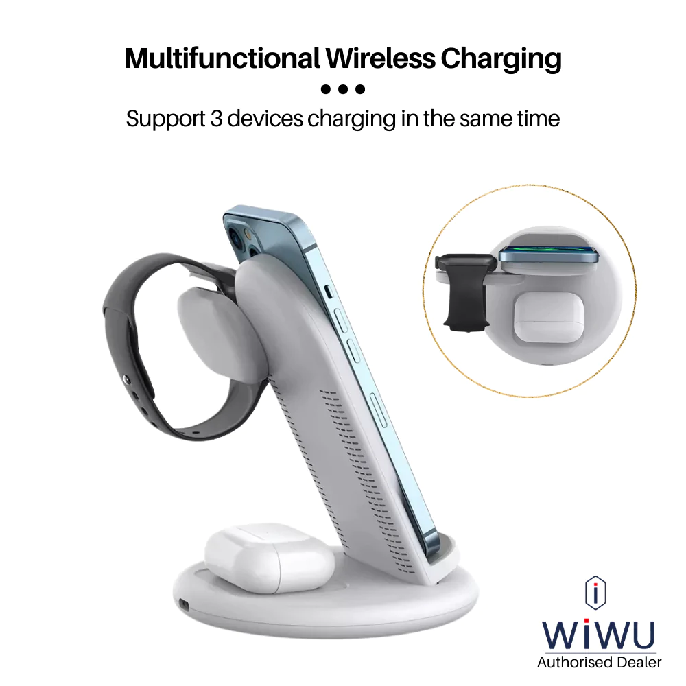 Dock Sạc Cao Cấp Không Dây WIWU Triple 3in1 W001 - Sạc Nhanh, Tiện Lợi, Sang Trọng Sạc không dây 3 trong 1, gấp gọn tiện lợi: WIWU Triple 3in1 W001 là giải pháp sạc