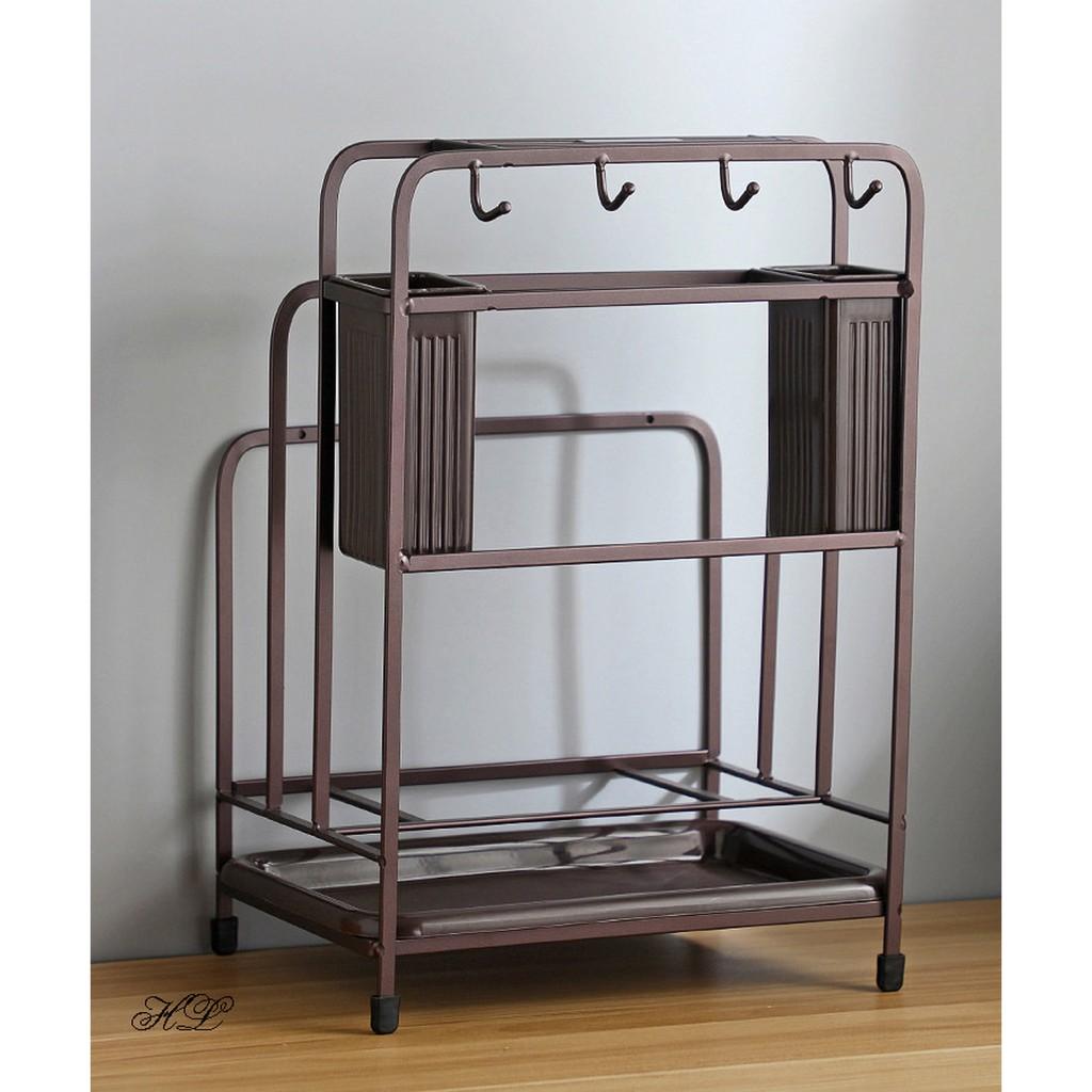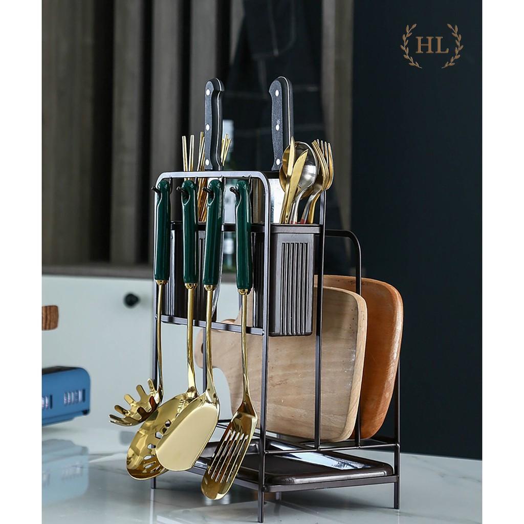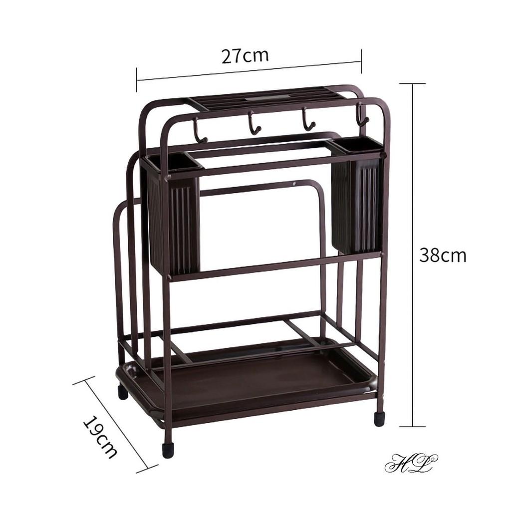 Kệ để dao thớt đũa muỗng nắp đa năng, chất liệu inox cao cấp chống gỉ sét, có khay đựng ráo nước