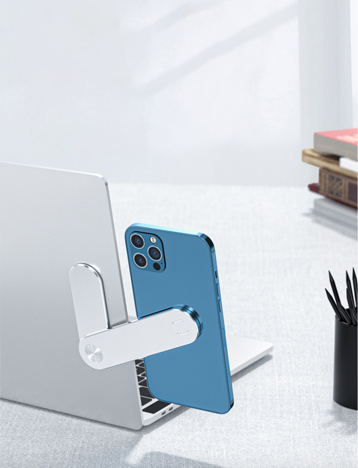 - Nam châm chống trượt, ổn định, đỡ điện thoại mà không làm ảnh hưởng đến hoạt động của laptop