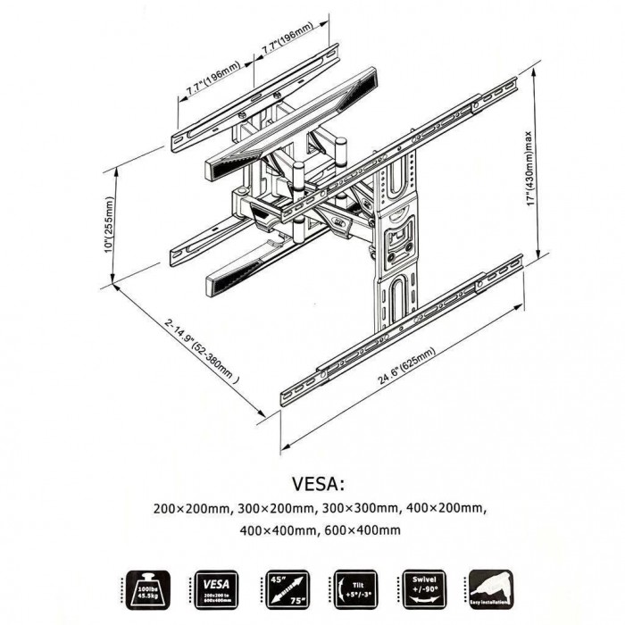 Sản phẩm Giá treo tivi góc xoay P5 là bản nâng cấp của giá treo tivi góc xoay DF400, được thiết kế đơn giản để bạn có thể tự lắp đặt TV cũng như tháo rời một cách