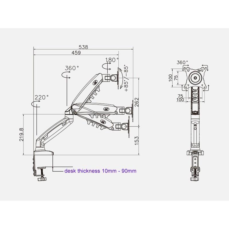 - Thanh chống thủy lực đàn hồi cao TÍNH NĂNG: Giá treo màn hình máy tính NBF80