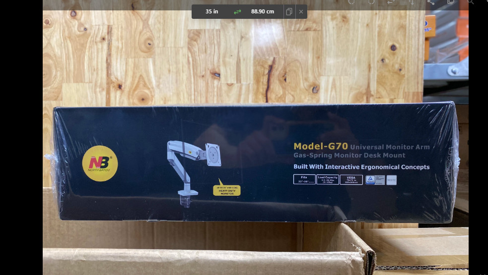 Mua tại TiktokGiá treo màn hình máy tính North Bayou G70 (22 – 35 inch) Màn hình phù hợp: 22 – 35 inch Tải trong: 3 -12kg Chuẩn Vesa: 75 x 75, 100 x 100 Khoảng cách nâng thẳng đứng 13,6″ (345mm) Xoay 360° ±90° Góc nghiêng +85° đến -30° Mở rộng tối đa 26″ (650mm) Hình ảnh thực tế của sản phẩm:
