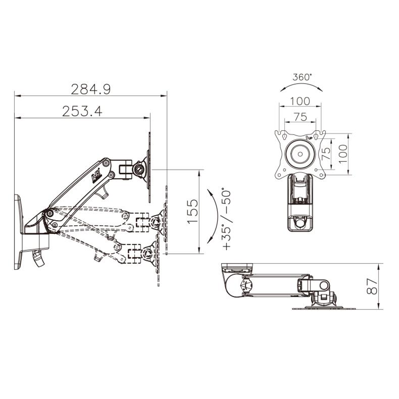 Hãng sản xuất: North Bayou Phù hợp với màn hình từ 17-27 inch Tải trọng: 7kg Xoay: 360 ° Qoay: 180 ° + Góc nghiêng từ +35° tới -50 ° Đóng gói: 39 x 28,5