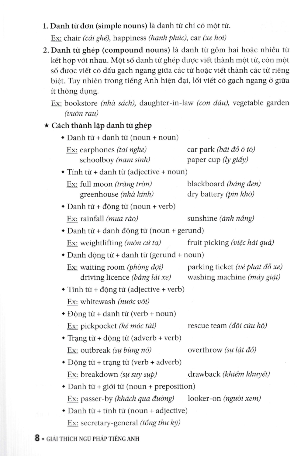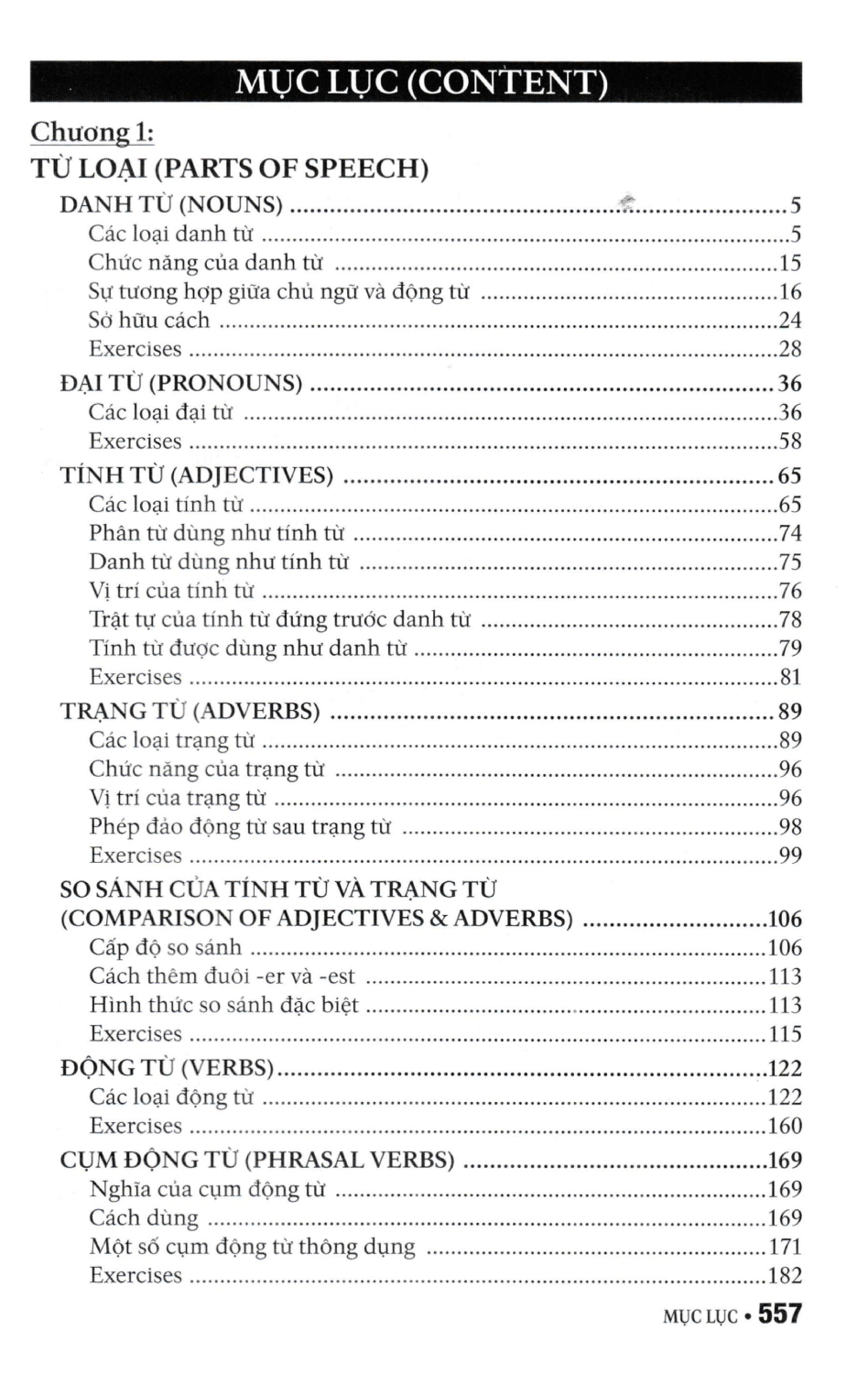 - Từ Vựng Học (Word Study). Các chủ điểm ngữ pháp trong từng chương được trình bày rõ ràng, chỉ tiết, giải thích cặn kẽ các cách dùng và quy luật mà người học cản nắm vững. Sau mỗi chủ điểm ngữ pháp là phản bài tập đa dạng nhằm giúp người học cùng có phản lý thuyết. Rất mong nhận được sự góp ý từ phía độc giả để giúp chúng tôi hoàn thiện sách.
