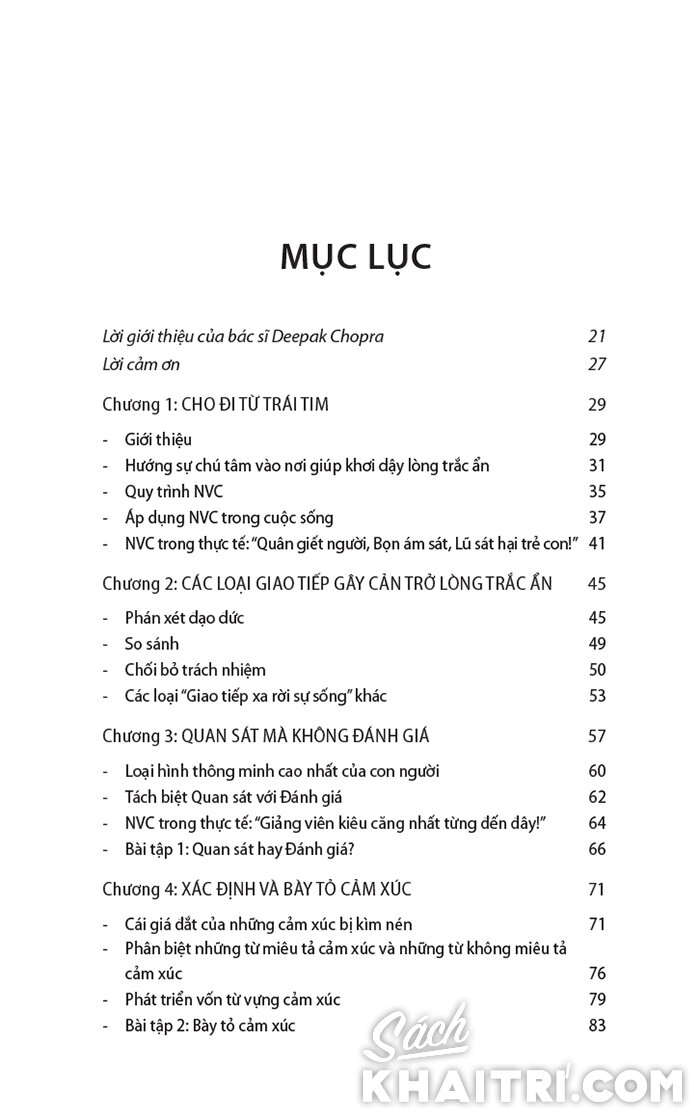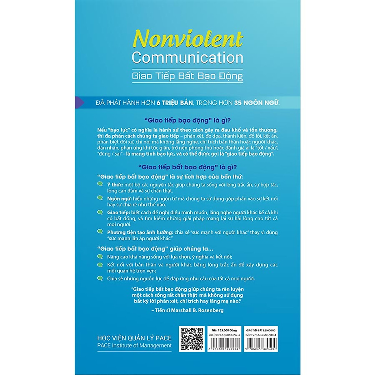Nói ngắn gọn, Giao tiếp bất bạo động là ngôn ngữ của lòng trắc ẩn nhằm giúp bạn cải thiện khả năng giao tiếp và chất lượng mối quan hệ với bản thân và với người khác. Trong cuốn sách này, bạn sẽ học cách nhận biết những suy nghĩ, cảm xúc, nhu cầu của bản thân, và bày tỏ chúng với sự chân thành và tôn trọng. Đồng thời, bạn cũng sẽ học cách lắng nghe những cảm xúc và nhu cầu đằng sau mọi thông điệp của người khác, dù cho những thông điệp đó có khó nghe như thế nào đi nữa. Từ đó, bạn có thể cùng người khác giải quyết những bất đồng, mâu thuẫn một cách hiệu quả hơn rất nhiều.