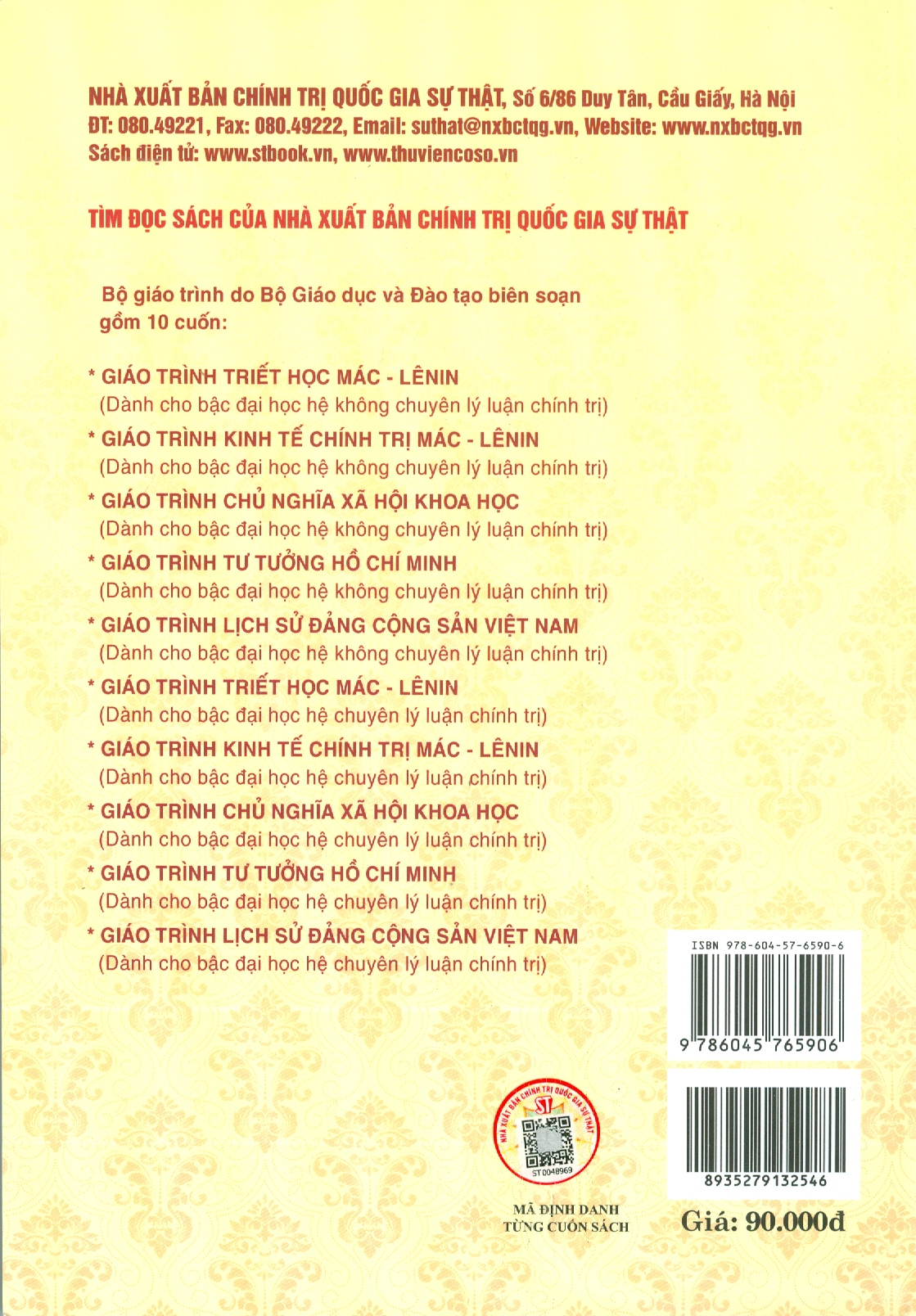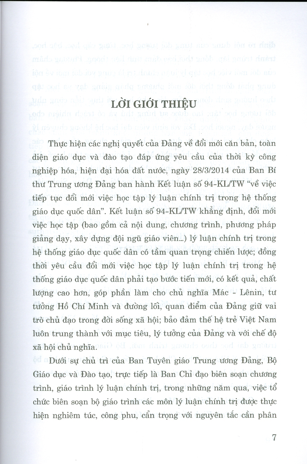 Bộ giáo trình lý luận chính trị gồm 5 cuốn dành cho bậc đại học hệ không chuyên lý luận chính trị. Bộ sách là tài liệu giảng dạy, học tập cho giảng viên, sinh