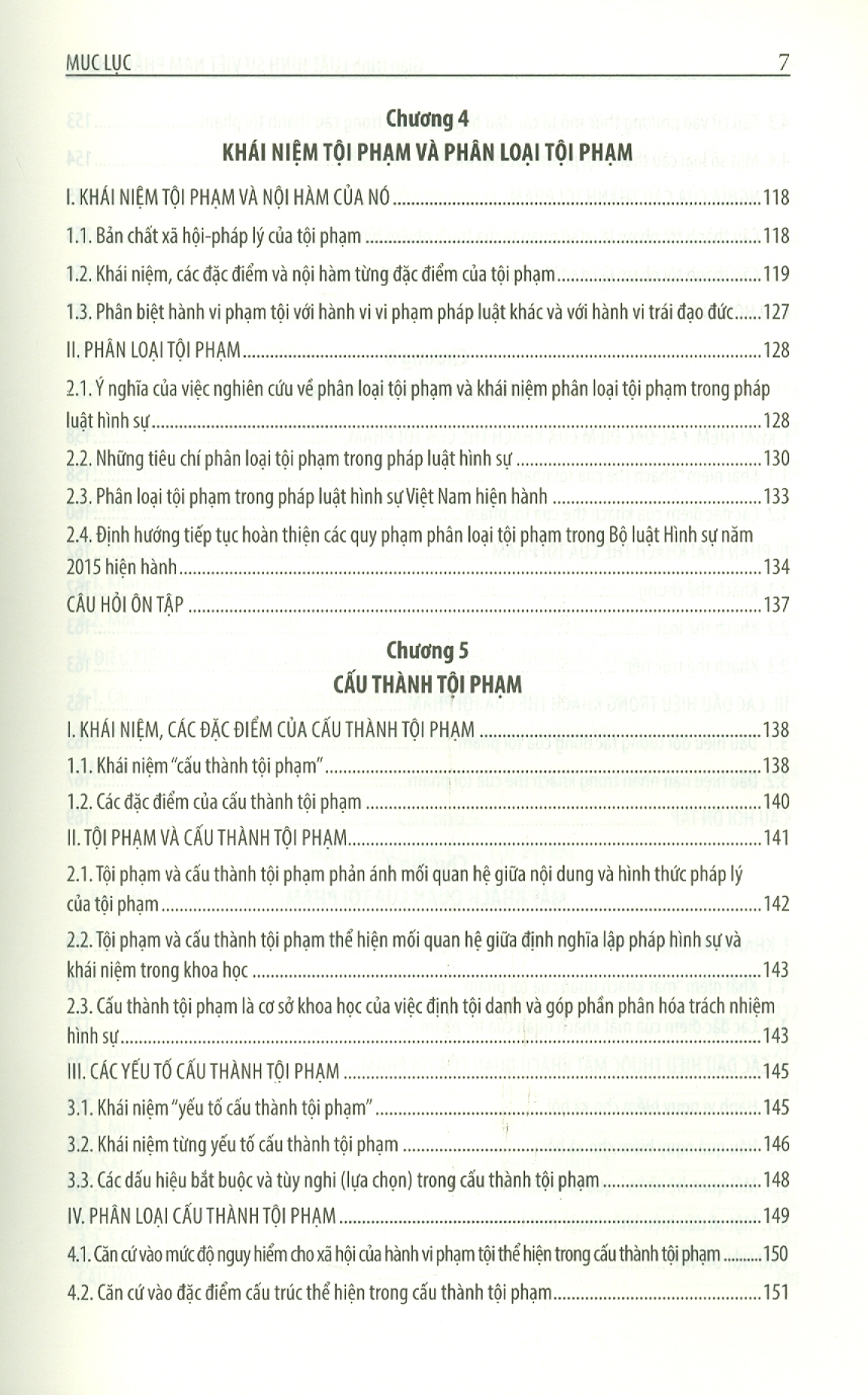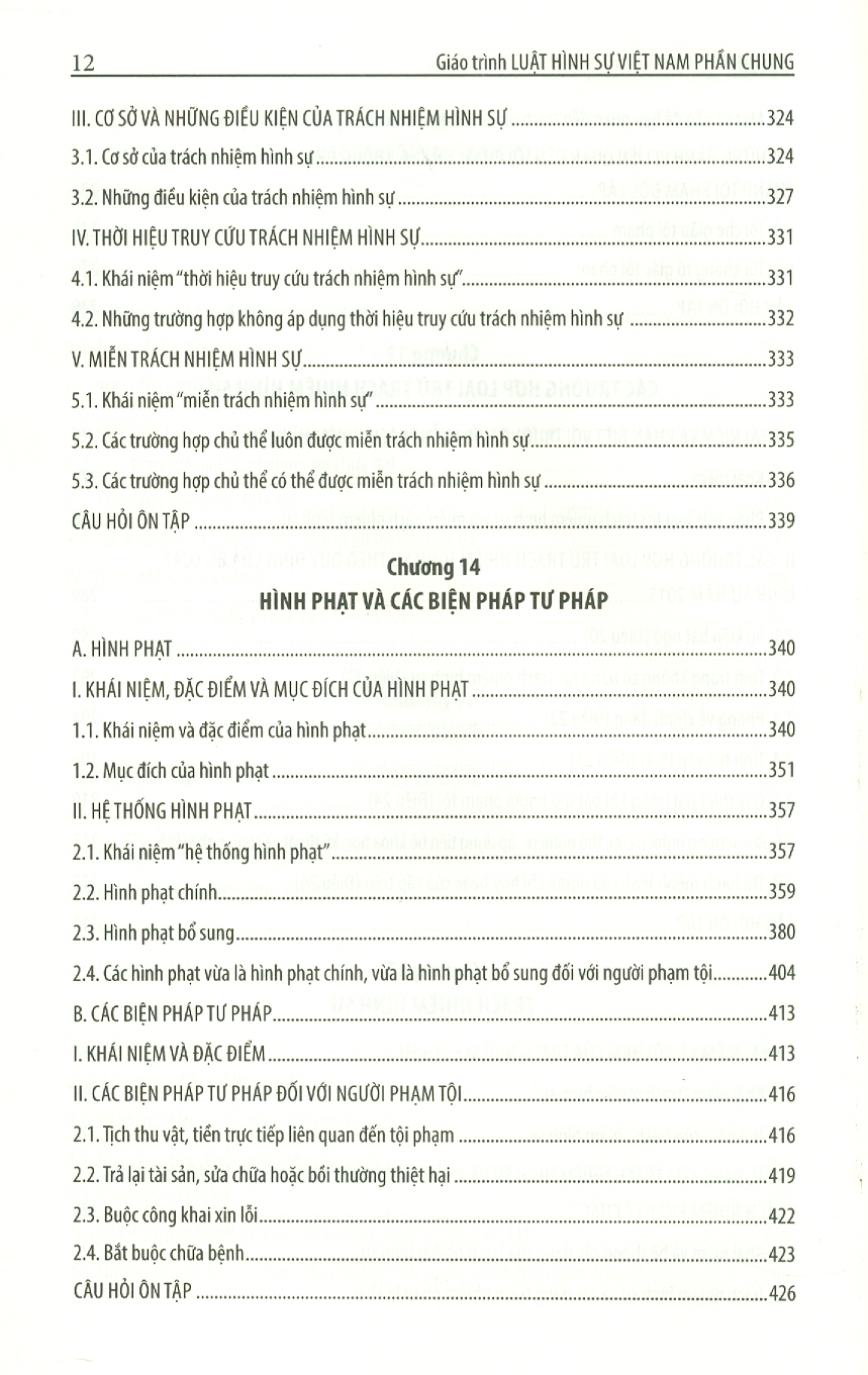 - Về kết cấu: Cuốn sách được sắp xếp theo các vấn đề lôgíc và khoa học. Đặc biệt, trong lần in này, Chương “Các nguyên tắc của Hình sự Việt Nam” được viết gộp chung với Chương “Đạo luật hình sự”; bên cạnh đó có một chương mới được viết thêm về “Trách nhiệm hình sự của pháp nhân thương mại phạm tội” nhằm mục đích tìm hiểu, nghiên cứu về cơ sở lý luận và những căn cứ pháp lý để truy cứu trách nhiệm hình sự pháp nhân thương mại phạm tội do đây là vấn đề lần đầu tiên được quy định trong Bộ luật Hình sự Việt Nam.