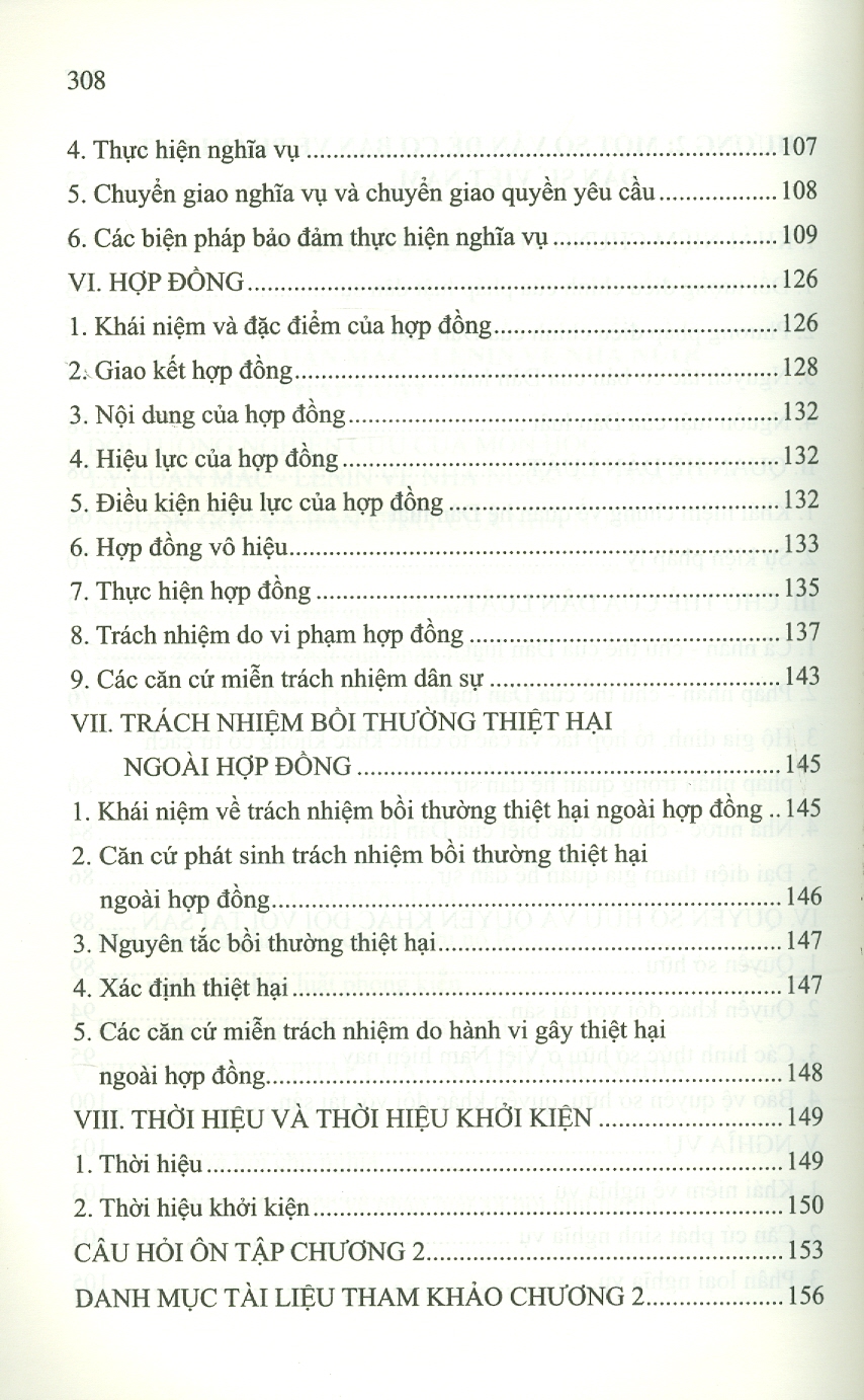 Giáo trình cũng đề cập tới những nguyên lý chung về ký kết và thực hiện hợp đồng dân sự, về thời hiệu tố tụng, về quan hệ dân sự có yếu tố nước ngoài và áp dụng pháp luật nước ngoài trong các quan hệ dân sự có yếu tố nước ngoài