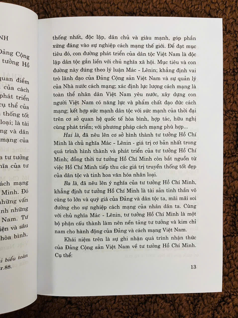 Giáo trình được kết cấu gồm 6 chương, trình bày những vấn đề cơ bản của tư tưởng Hồ Chí Minh: