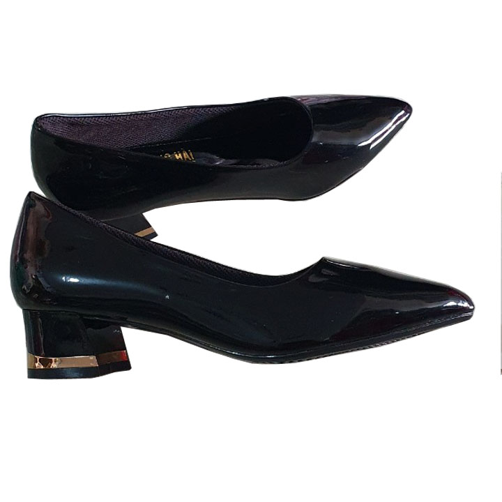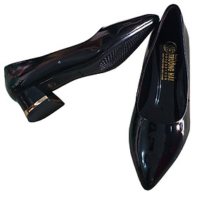 ✨Giày cao gót bít mũi Trường Hải đế vuông 3cm da bóng đen GCG120