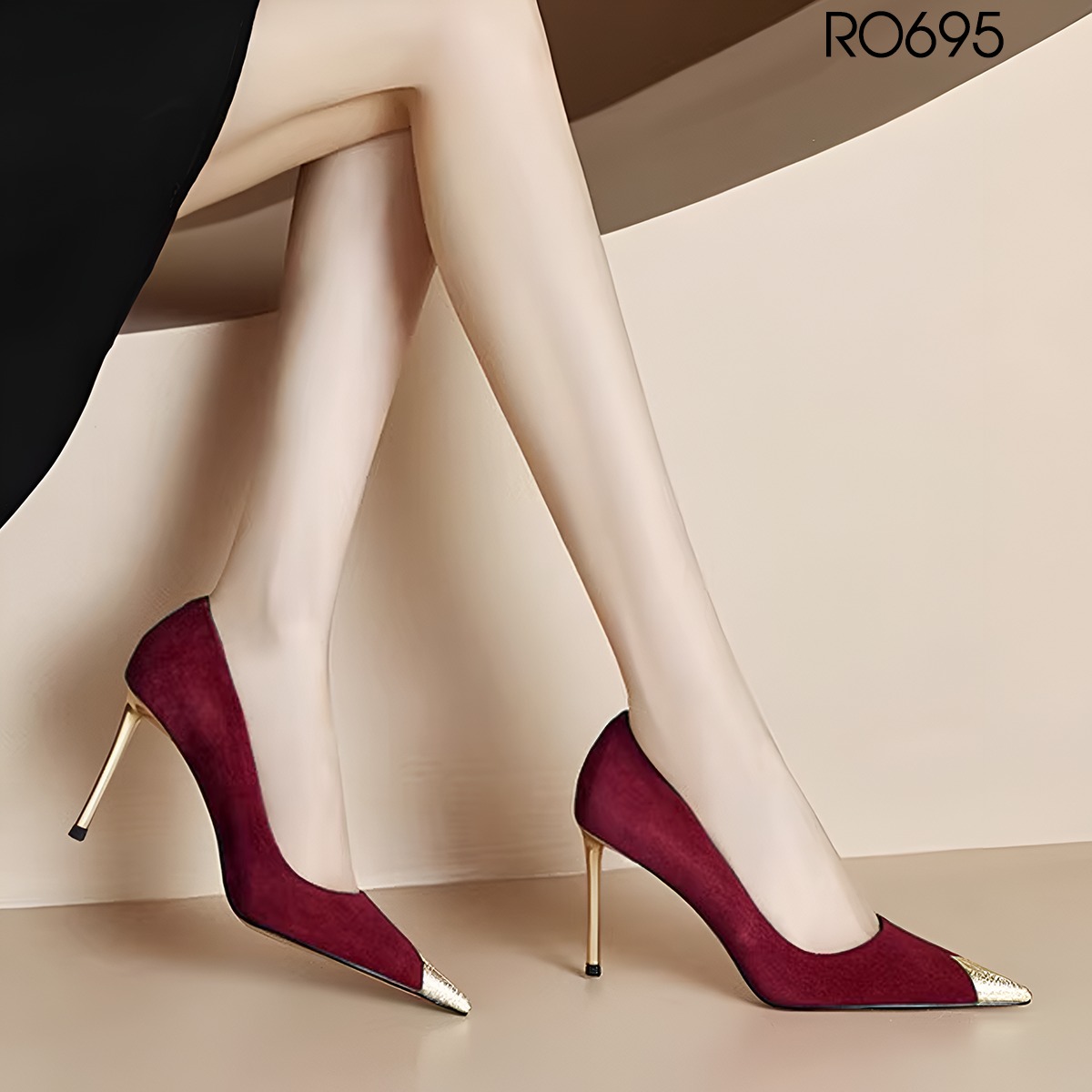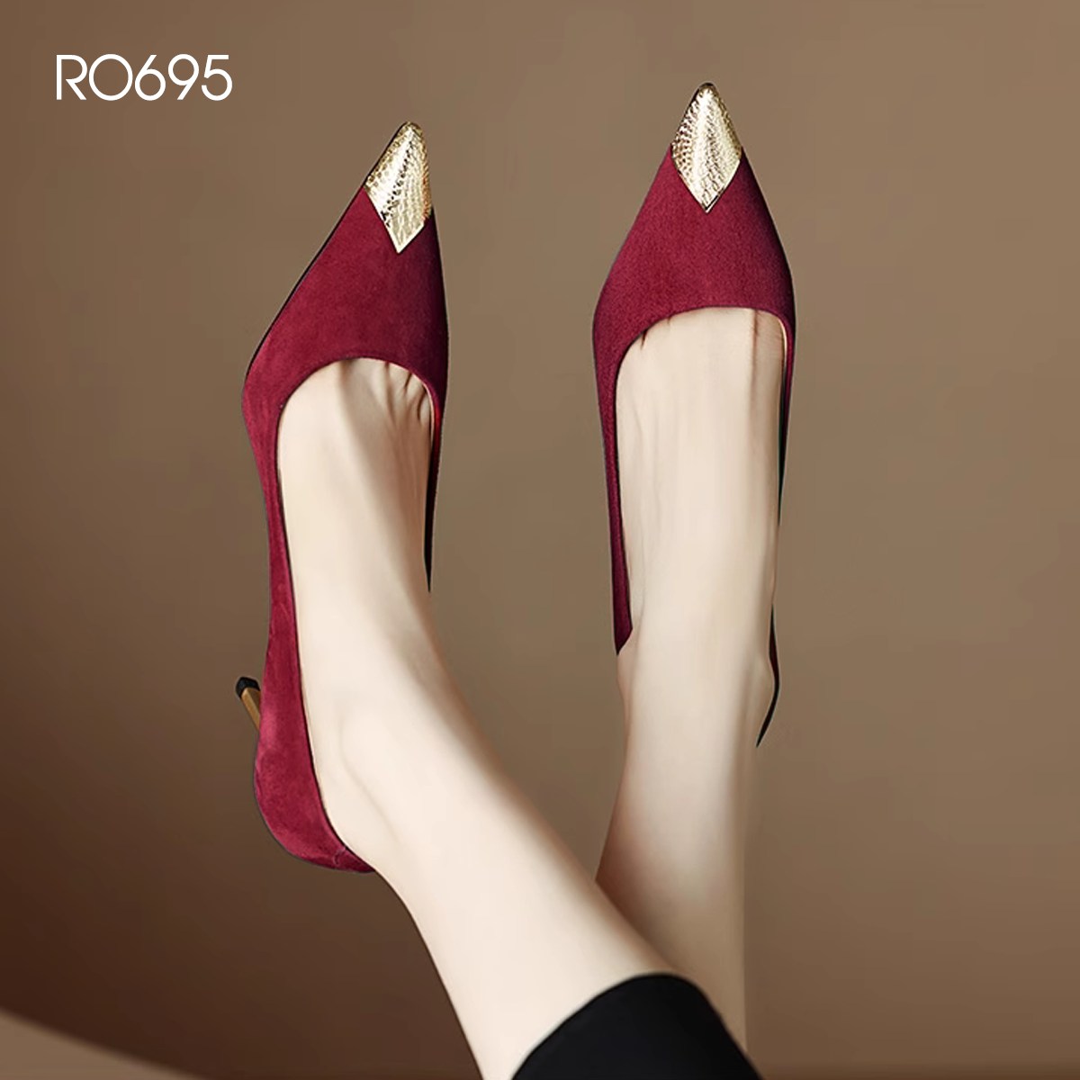 MÔ TẢ SẢN PHẨM: Giày nữ cao gót nhọn, da lộn ROSATA RO695 -9p- Nâu, Đỏ - HÀNG VIỆT NAM - BKSTORE