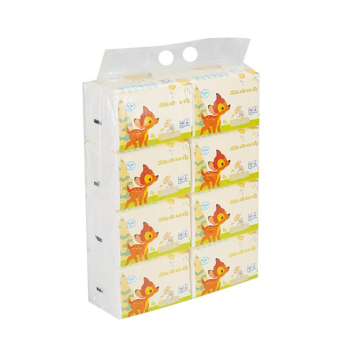 - Đóng gói: 8 gói/ xách, mỗi gói có 465 tờ/3 lớp