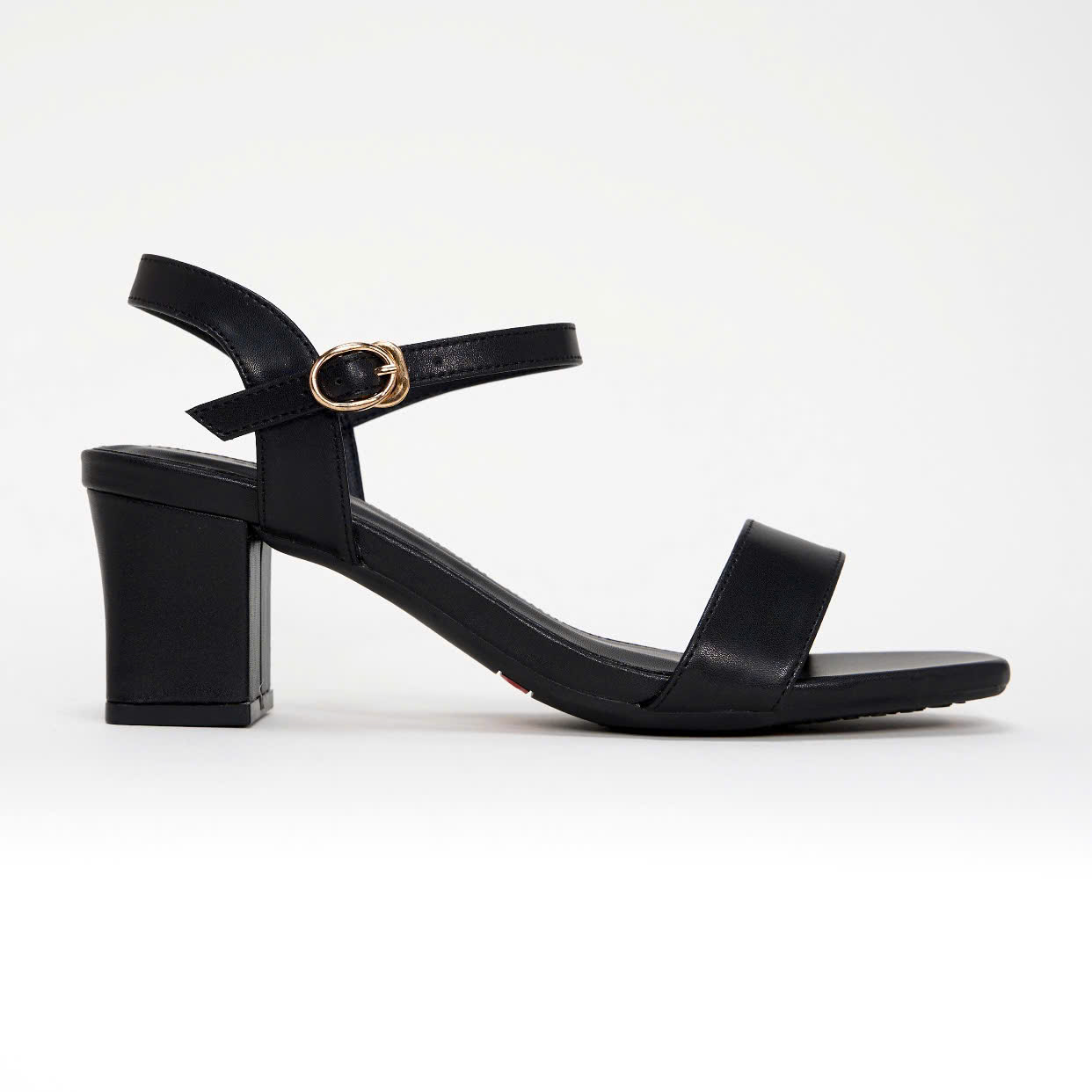 HE 37 Mô tả sản phẩm sandal nữ màu đen 1. Thiết kế tổng thể - Dáng sandal hở mũi, quai ngang kết hợp quai hậu. - Gam màu đen trơn, sang trọng và dễ