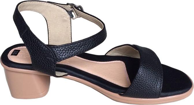 Dép xăng đan nữ đế vuông cao 5cm da bò thật