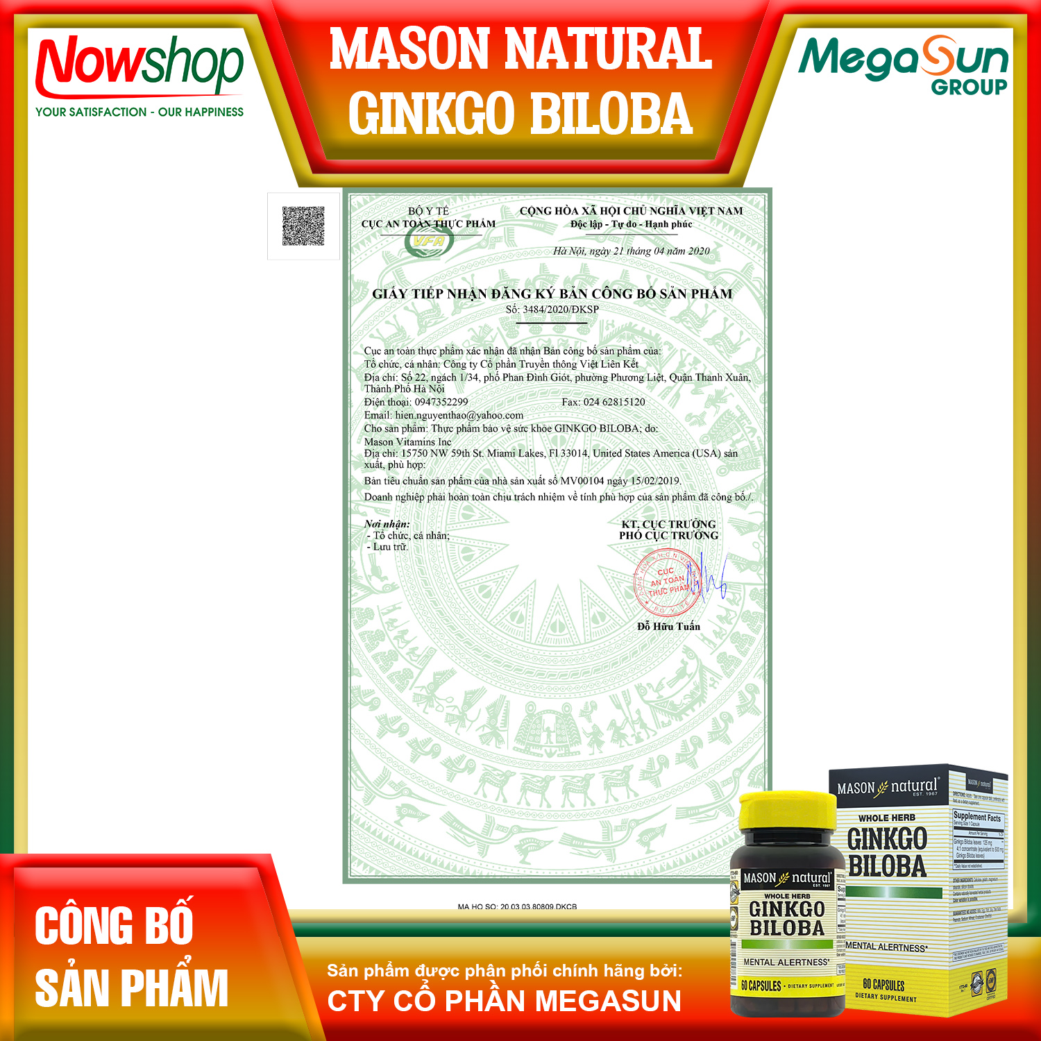 Viên Uống Bổ Não Mason Ginkgo Biloba - Tăng Cường Trí Nhớ, Tuần Hoàn Máu Não
