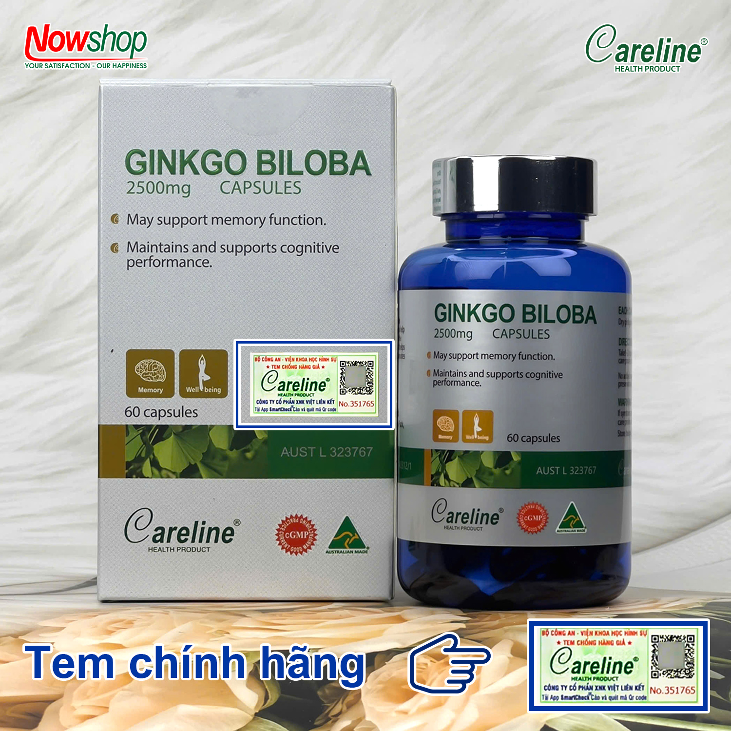 Viên bổ não Careline Ginkgo Biloba 2500mg - Tăng tuần hoàn máu não - Hỗ trợ cải thiện trí nhớ, giảm căng thẳng!
