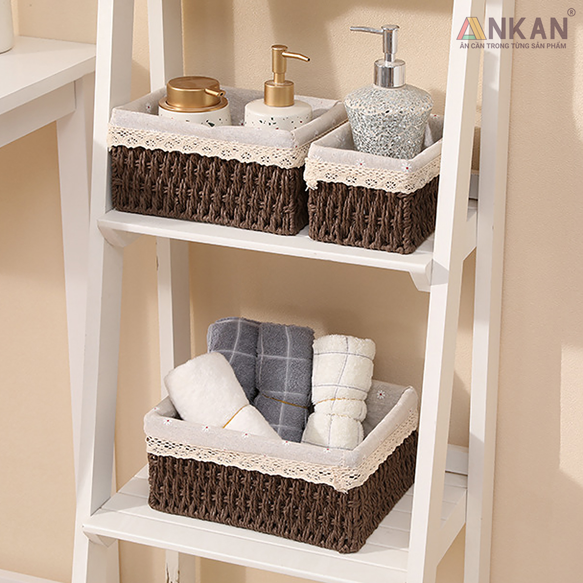 - Giỏ mây đựng đồ có thể đựng đồ trang điểm, đồ trong phòng tắm, phân loại đồ đạc ở các kệ tủ, ngăn kéo.
