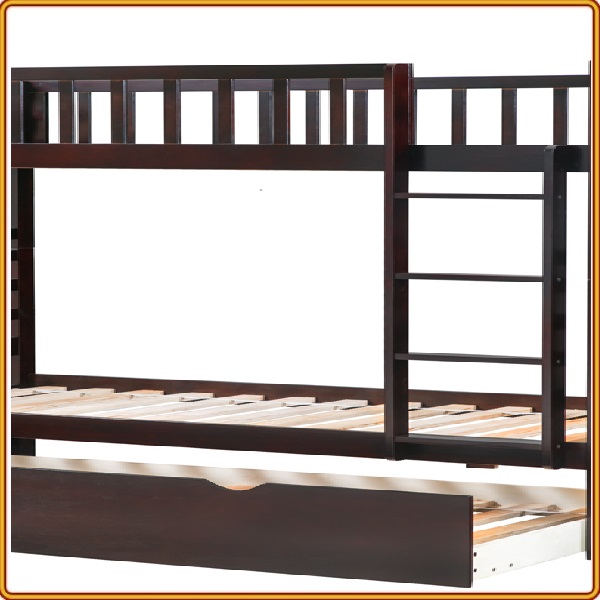 Giường tầng xuất khẩu Derby có kích thước lọt lòng giường trên/dưới là 100x193 cm / 120 x 193 cm, phủ bì 206x128x178 cm. Khoảng cách giữa 2 tầng là 98 cm, cầu thang có