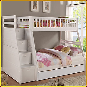 KÍCH THƯỚC: R 146 x D 205 x C 170 (cm) NỆM TẦNG TRÊN: 100 x 195 x 9+ (cm) NỆM TẦNG DƯỚI: 140 x 195 x 9+ (cm) MÀU SẮC: Trắng, Vàng, Nâu CHẤT