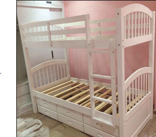 Giường tầng kết hợp cầu trượt và tủ ngăn kéo bên dưới #giường_tầng #bunkbed #giường_trẻ_em