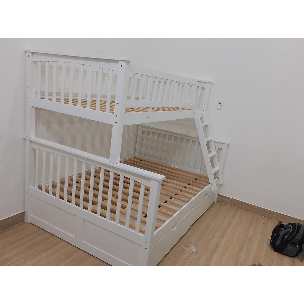 Mua tại TiktokKÍCH THƯỚC:R 146 x D 205 x C 170 (cm)NỆM TẦNG TRÊN:120 x 195 x 9+ (cm)NỆM TẦNG DƯỚI:140 x 195 x 9+ (cm)MÀU SẮC:Trắng, Vàng, NâuCHẤT LIỆU:Gỗ thông New ZealandHỘC KÉO:Có (02 Hộc) Sản phẩm này là tài sản cá nhân được bán bởi Nhà Bán Hàng Cá Nhân và không thuộc đối tượng phải chịu thuế GTGT. Do đó hoá đơn VAT không được cung cấp trong trường hợp này.
