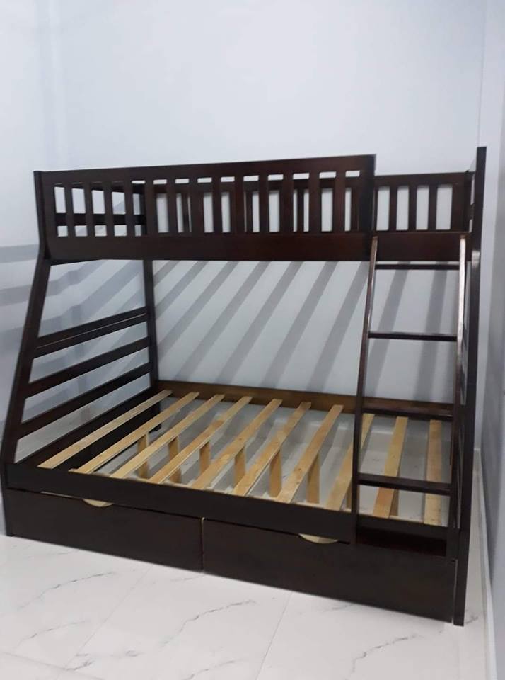 + Chất liệu: Khung giường gỗ thông Newzealand, phân tầng, Vách, đáy hộc gỗ công nghiệp, thang giường MDF chịu lực + Kích thước: kích thước phủ bì, tầng trên ưới 1mx2m Giường tầng hộp