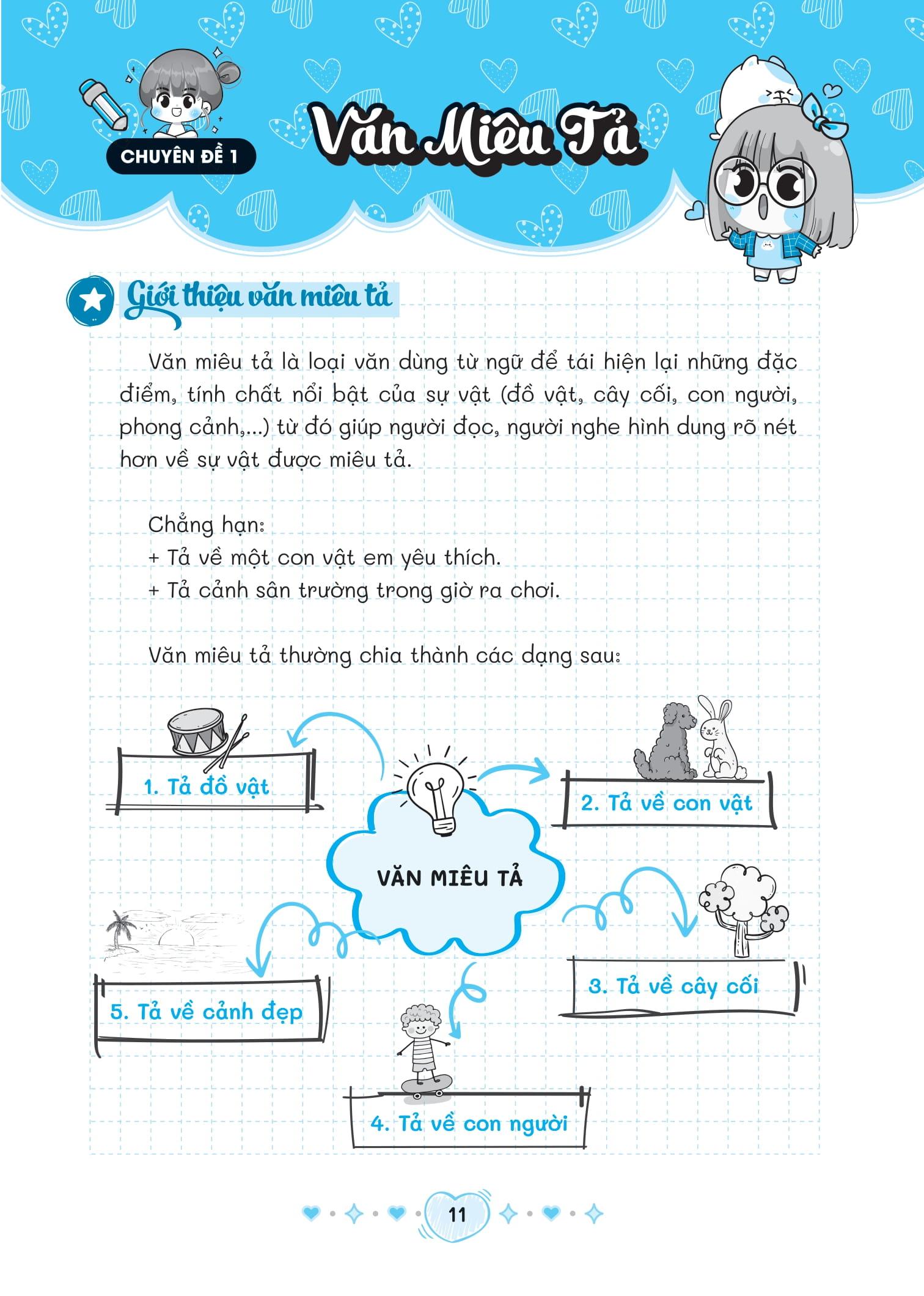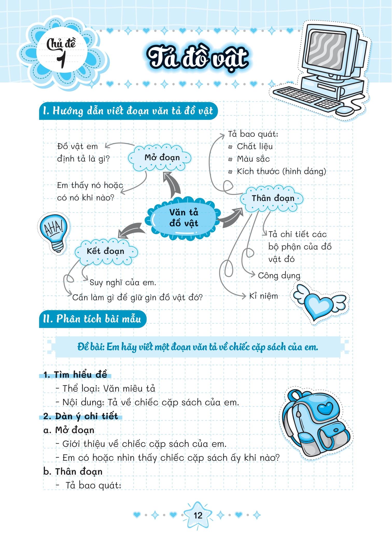 - Sơ đồ tư duy và dàn bài rõ ràng, dễ hiểu: Sách cung cấp sơ đồ tư duy và dàn bài chi tiết, giúp các bạn nhỏ hiểu rõ cấu trúc của một bài văn và cách triển khai ý tưởng một cách có hệ thống.