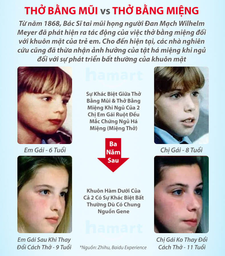 Thở bằng miệng khi ngủ là 1 tật xấu gây ảnh hưởng đến sức khỏe, hoạt động của phổi, giảm nồng độ oxy trong máu, viêm họng, bệnh lý về răng miệng Nó còn gây