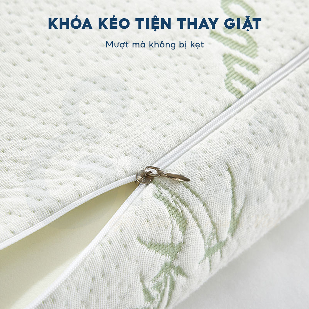 Vỏ gối được làm từ gấm chần bông làm từ sợi tre kháng khuẩn siêu thoáng mát, có khả năng co giãn 4 chiều và thấm hút mồ hôi cực tốt.