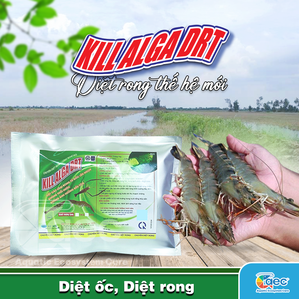Mua tại TiktokKill Alga DRT là sản phẩm chuyên dụng giúp kiểm soát các loại rong gây ảnh hưởng đến môi trường ao nuôi như: rong đuôi chồn, rong bún, rong đá, rong nhớt... Sản phẩm giúp xử lý rong tận gốc, không gây ảnh hưởng đến hệ sinh thái ao nuôi khi sử dụng đúng cách. Tại sao cần kiểm soát rong trong ao nuôi?