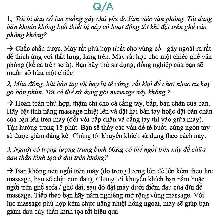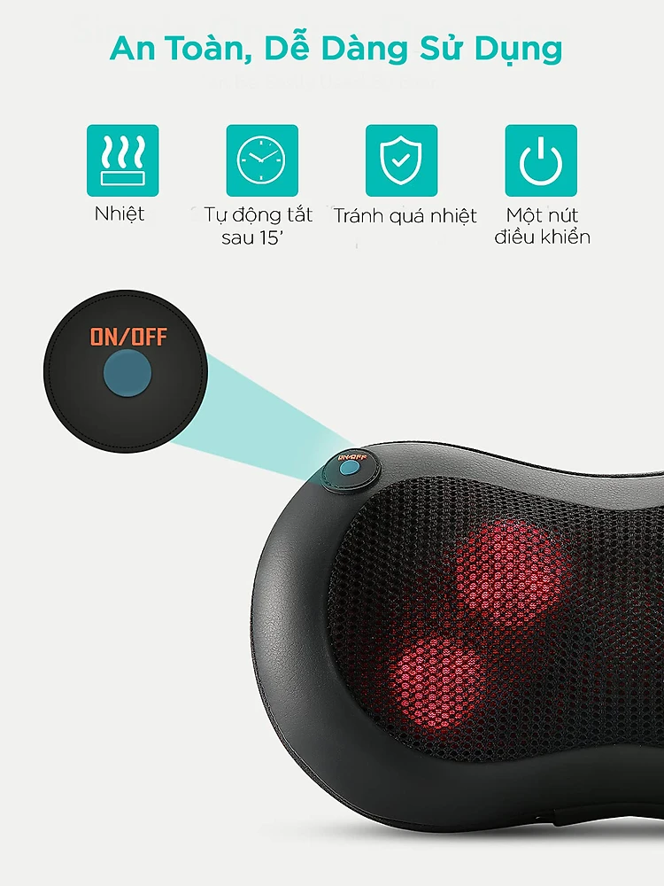 Gối Massage hồng ngoại đa năng - Sử dụng được cho toàn bộ cơ thể – cổ, vai, gáy, lưng trên, lưng dưới, cẳng chân và bàn chân - Thiết kế khoa học tăng thêm