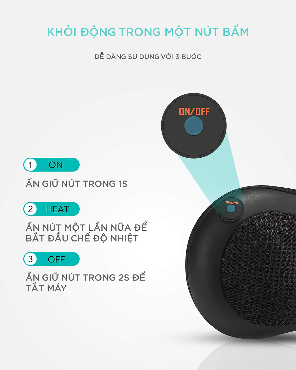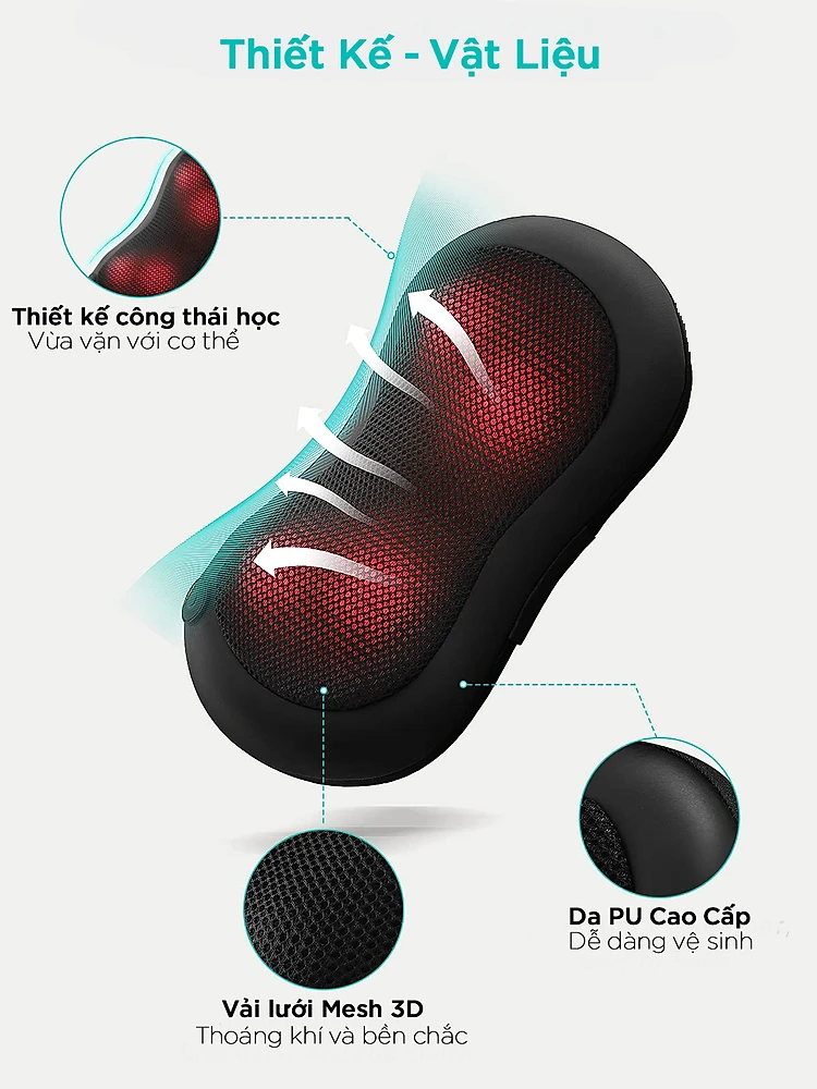 Tính năng - Gối massage không dây sử dụng pin sạc công nghệ cao thế hệ mới giúp bạn dễ dàng mang theo bất kỳ đâu - Tinh tế và nhẹ, chỉ nặng 2,2 kg,