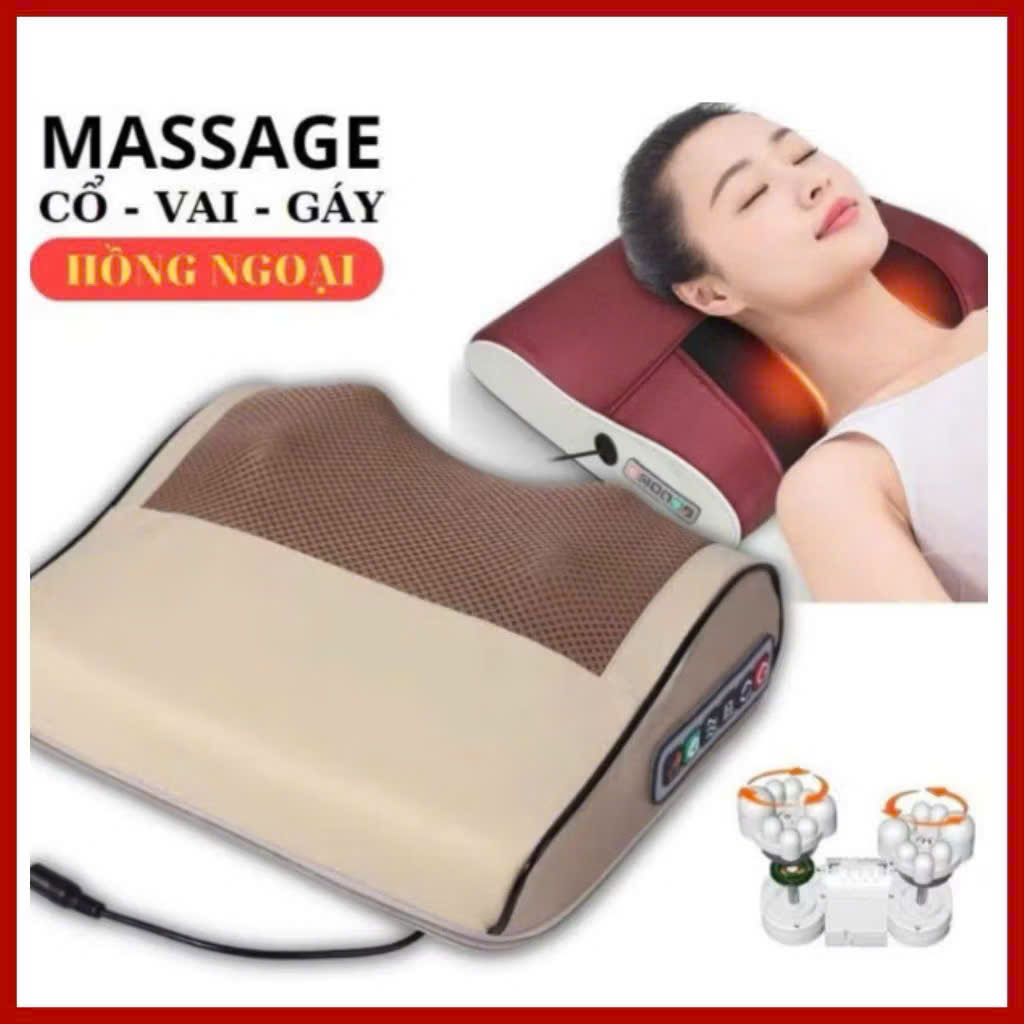 Gối Massage Hồng Ngoại cổ vai gáy, máy massage 20 bi cao cấp hỗ trợ mát xa vùng cổ,vai gáy toàn thân