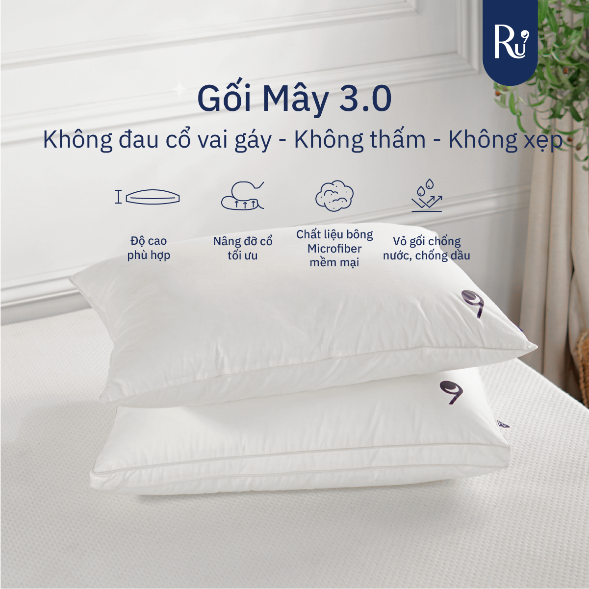 Gối Mây Ru9 | Chiếc gối 3.0 - Không thấm nước - Không xẹp lún - Không đau cổ vai gáy